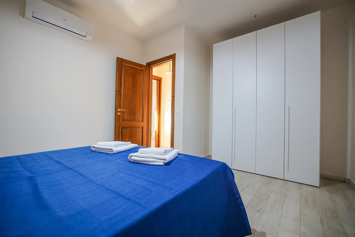 L’alloggio si compone di una zona notte con camera matrimoniale (climatizzata e completa di armadio) e una zona giorno con cucina attrezzata. Quest’ultima, grazie alla presenza di un divano letto, consente all’appartamento di ospitare fino a un massimo di 4 persone.