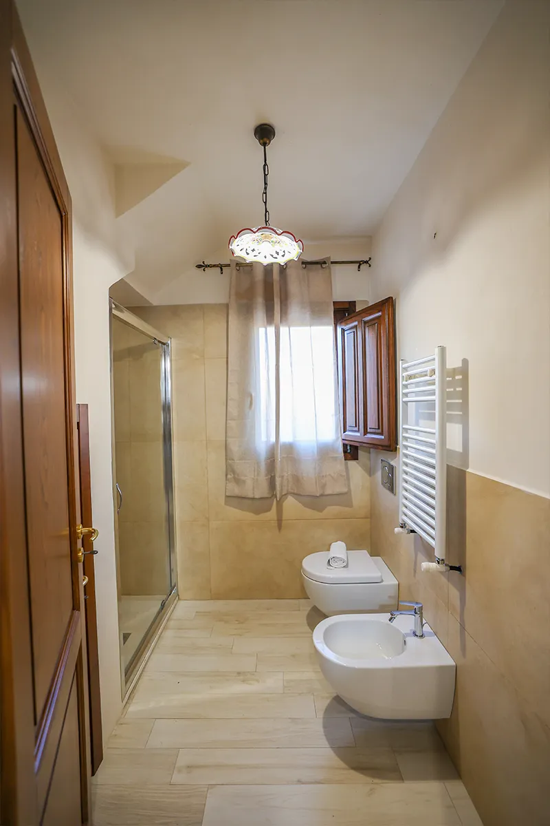 1 bagno completo di doccia o vasca, bidet, asciugacapelli e kit di cortesia.